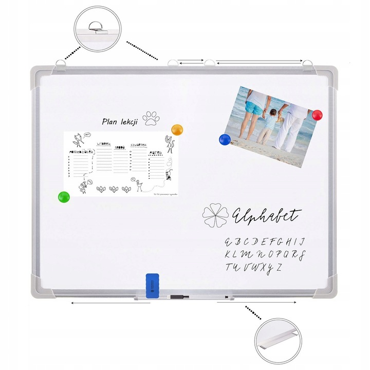 - Многофункциональность: Возможность писать и стирать, а также прикреплять заметки магнитами.