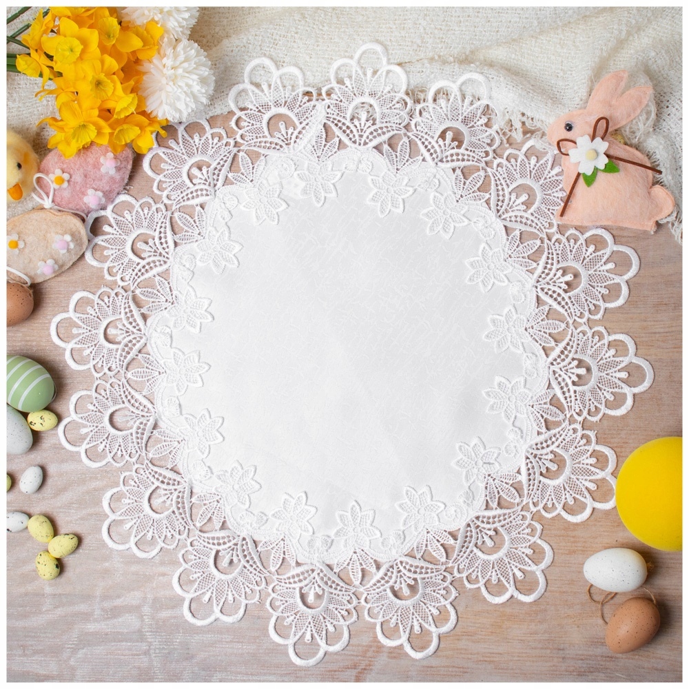 Белая кружевная салфетка до пасхальной корзины святой 30 см Гипирова