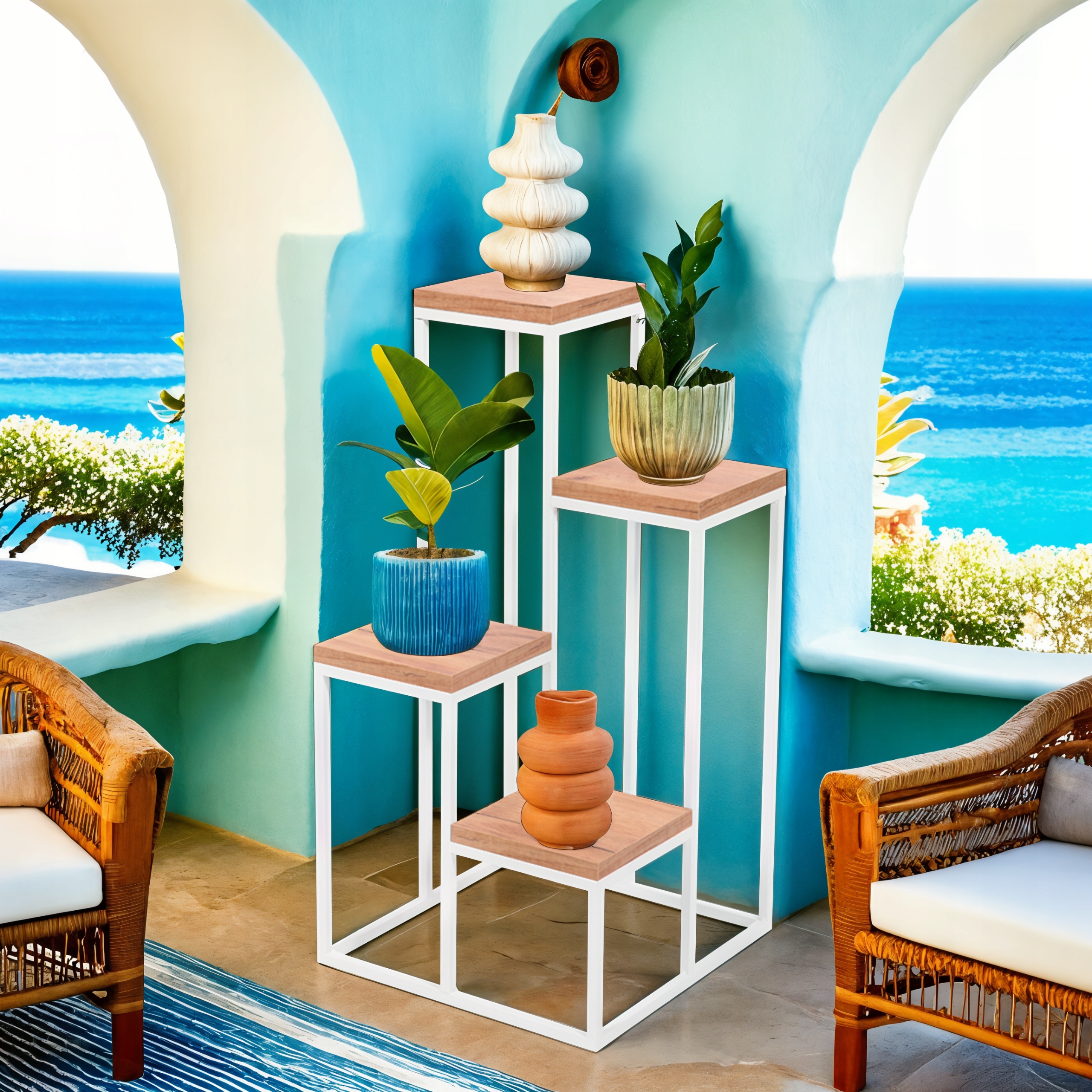 КВАДРАТНАЯ ПОДСТАВКА ДЛЯ ЦВЕТОВ из БЕЛОГО МЕТАЛЛА С 4 ПОЛКАМИ ПРЕМИУМ ПОЛЬСКИЙ ПРОДУКТ