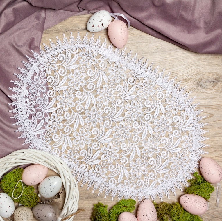 Мы представляем элегантную белую салфетку с декоративной гипкой, которая, которую это неразделимый элемент рождественской подготовки. В идеале подходит для пасхальной корзины, а также на столе во время торжественного пасхального завтрака