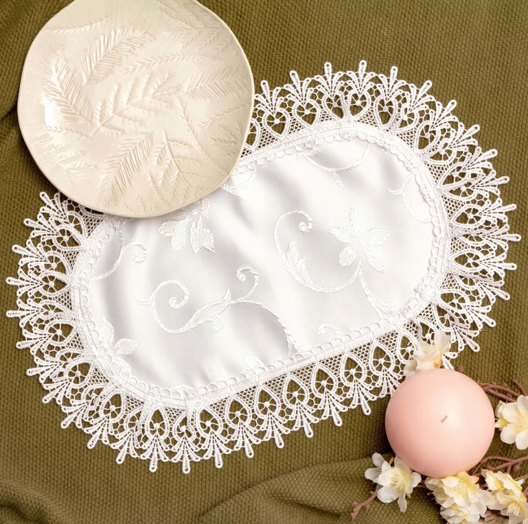 Белая овальная салфетка для корзины Saint 30x45 с Guipure