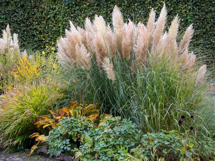 Пампасная трава - это уникальное декоративное растение, напоминающее фонтан из высоких листьев, восхищающее своей эффектные, плюмовидные листья летом и осенью появляющиеся над листьями на жестких побегах соцветия, состоящие из огромного количества мелких белых колосков. Вырастает максимум до 2 метров в высоту. Я предпочитаю солнечные места, но защищенные от ветра. Этот сорт отличается сильным ростом и обильным цветением.