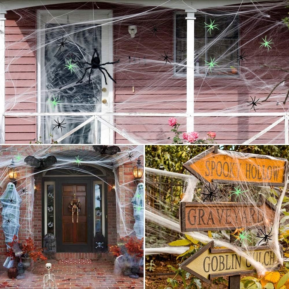 - Идеальное украшение для улицы на Хэллоуин. Измените свой дом к Хэллоуину, украсив его искусственной паутиной.
