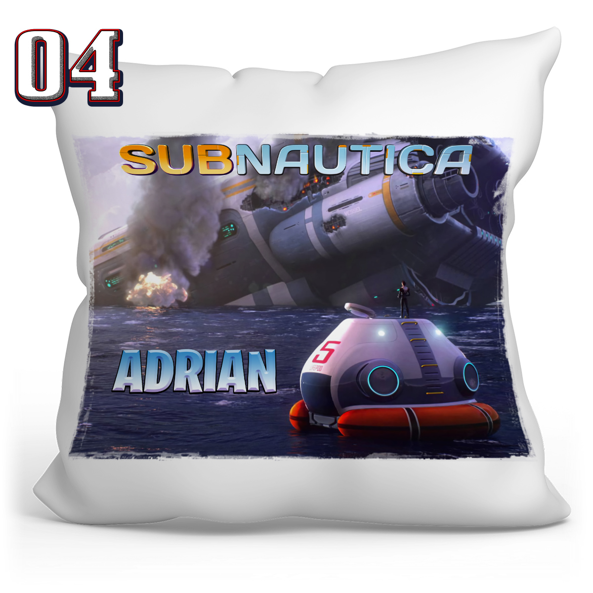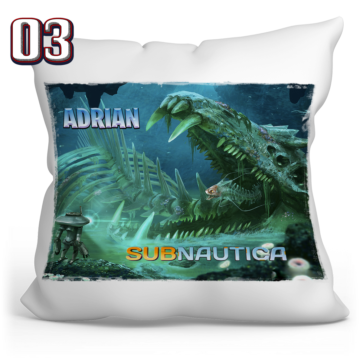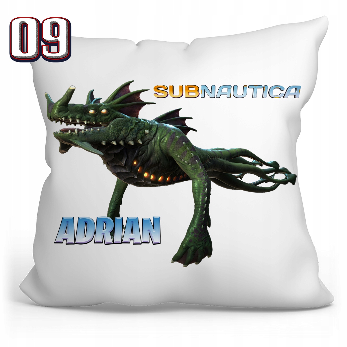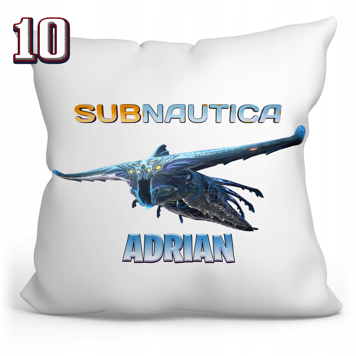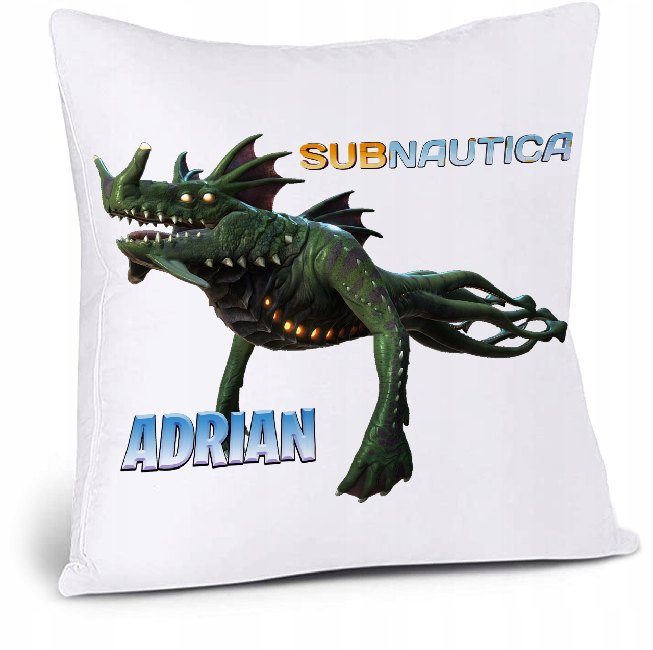 Подушка 40х40 с принтом - SUBNAUTICA + возможность нанесения имени или другого текста на товар, включенный в стоимость.