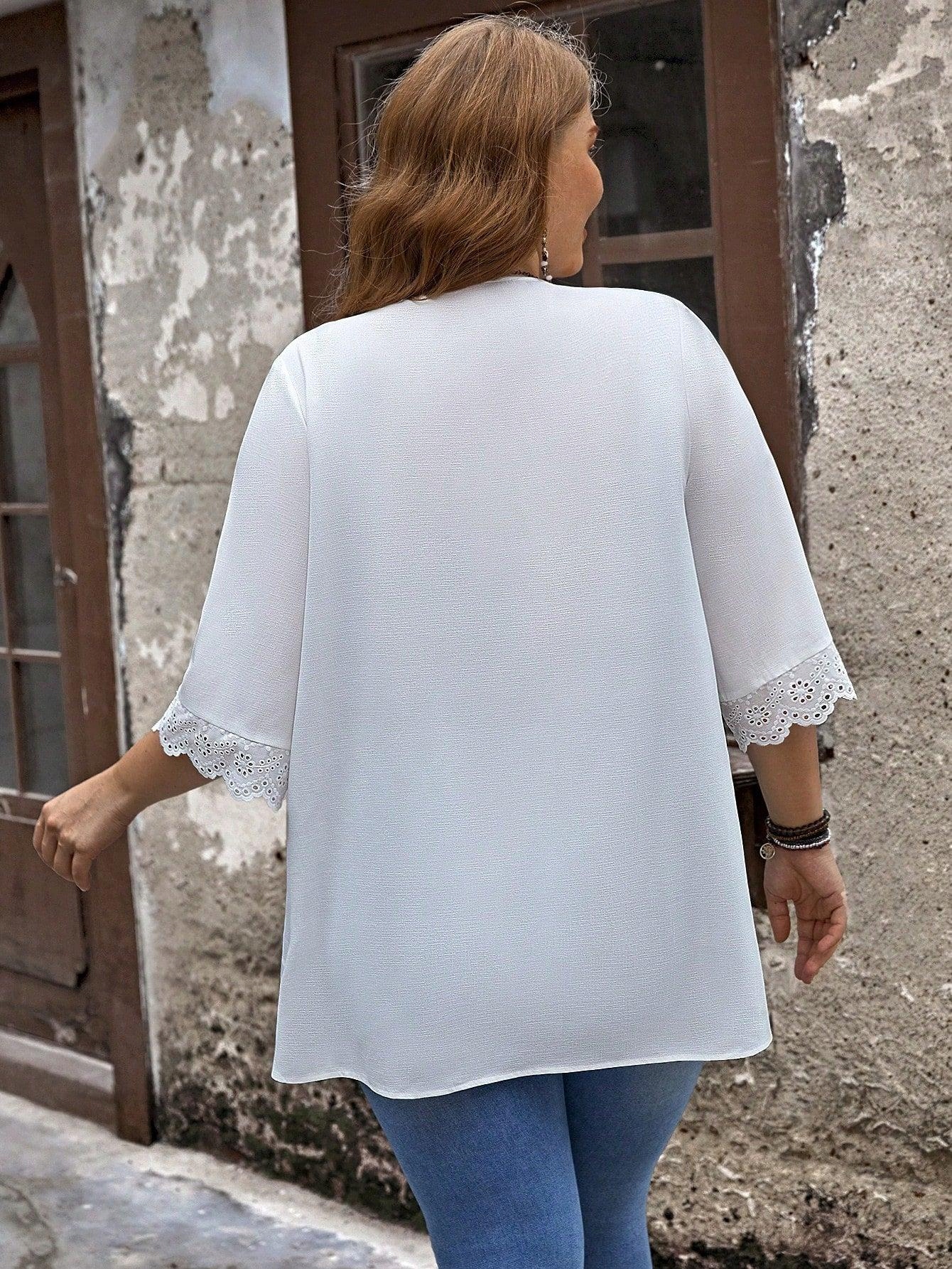БІЛА ПОКРИВКА, РУКАВ 3/4, АЖУРНІ ВСТАВКИ, РОЗМІР EMERY ROSE PLUS 50