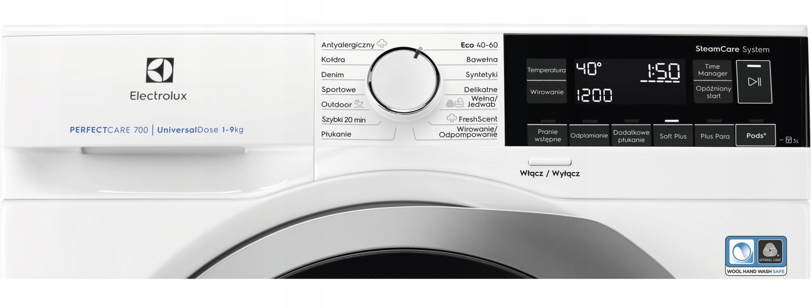 - Программы стирки: Антиаллергенная Хлопок Деликатная джинсовая ткань Эко 40–60° Пуховые одеяла Верхняя одежда Полоскание Спортивная синтетика Быстрая 20 мин Шерсть/шелк Отжим/слив