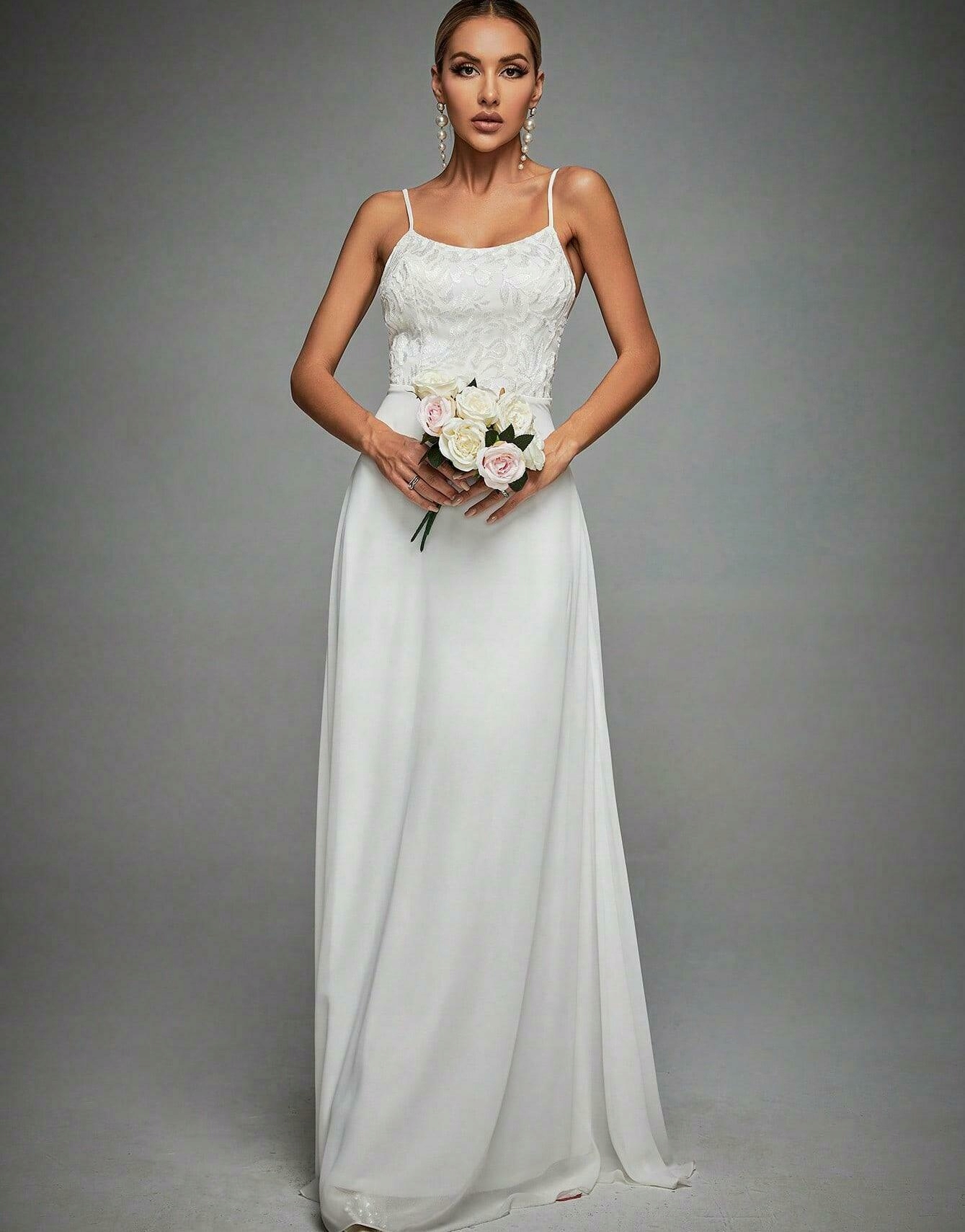 БІЛА ПРЯМА ГЛАДКА ВЕСІЛЬНА СУКНЯ МАКСІ МЕРЕЖИВО БРЕТЕЛЬКИ ТУМАННОСТІ 38