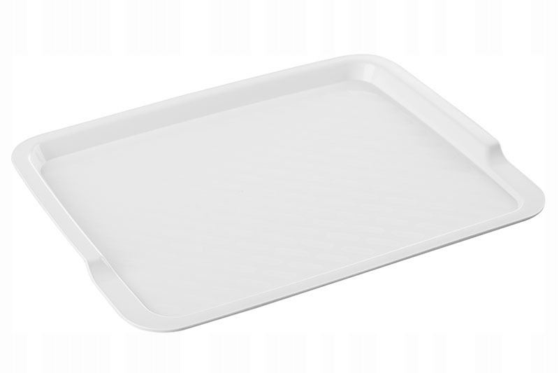 Поднос для сервировки, изготовлен из белого пластика высочайшего качества. Практично, легко чистится и незаменимо во время семейных торжеств при подаче блюд. Также полезен в барах, ресторанах и столовых. Его можно использовать для переноски и сушки посуды. Идеальный продукт для вашей кухни.