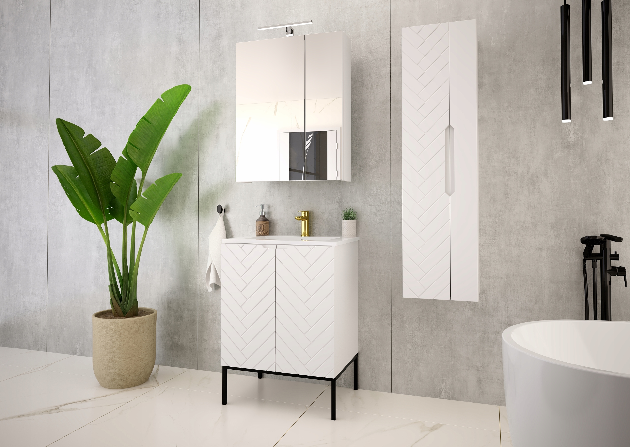 Характеристика fir -milling на фронтах придает мебели уникальный персонаж, создавая тонкую игру света и тени. Металлическая рама добавляет легкость и вводит современный акцент, а доступность до трех цветовых вариантов - кашемир, классический белый и элегантный черный - позволяет создавать интерьер, идеально подходящий для личных предпочтений.