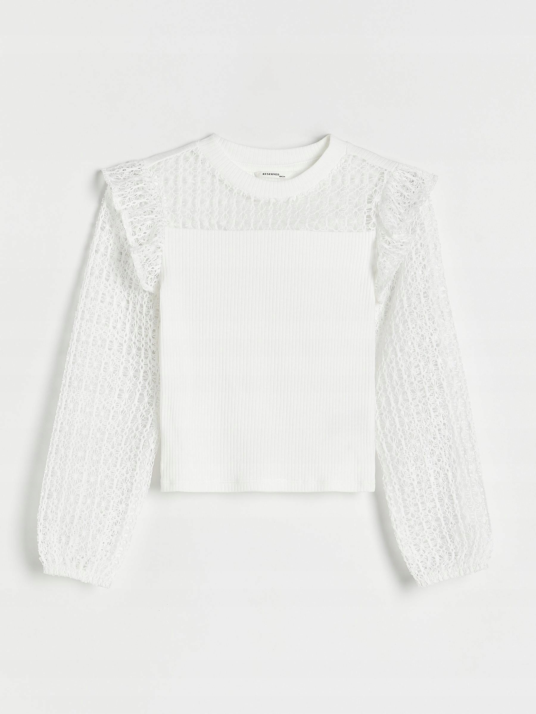 Белая полосатая блузка с открытыми рукавами с длинными рукавами хлопок 122