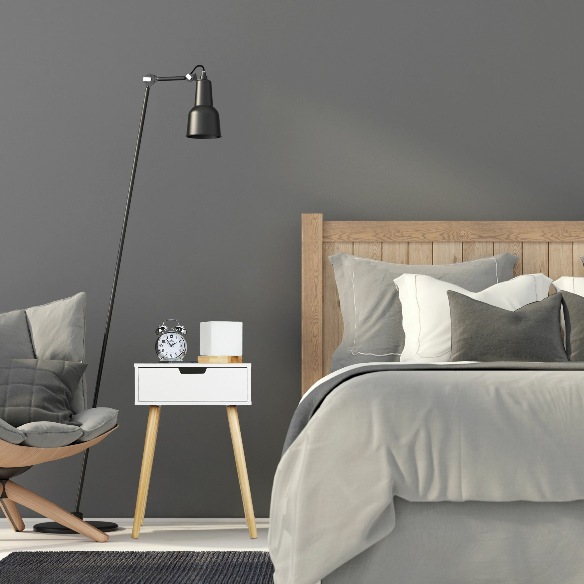 Прикроватную тумбочку следует поставить рядом с кроватью – так, чтобы будильник, вечернее чтение и лампа были под рукой. Белая прикроватная тумбочка привнесет современный дизайн со скандинавским акцентом в спальню или молодежную комнату. В ящике с ручкой также достаточно места для носков, нижнего белья, лекарств и других мелких вещей. Прикроватная тумбочка легко собирается и устойчива благодаря 4 диагональным деревянным ножкам.