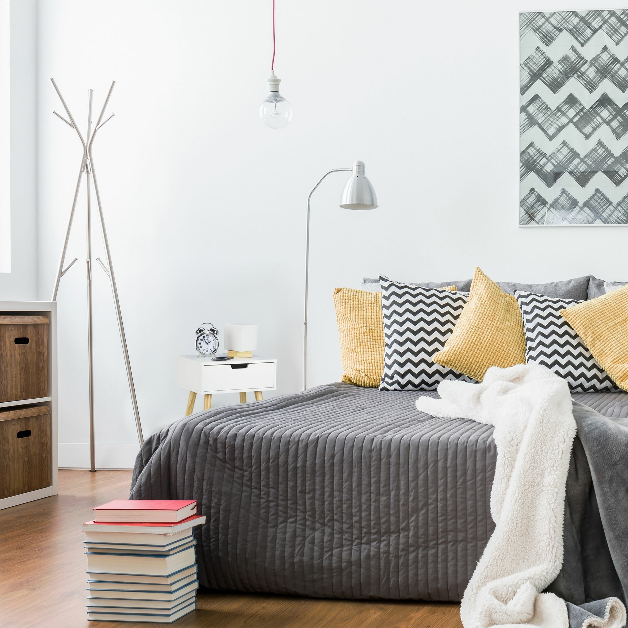 Низкая прикроватная тумбочка в скандинавском стиле