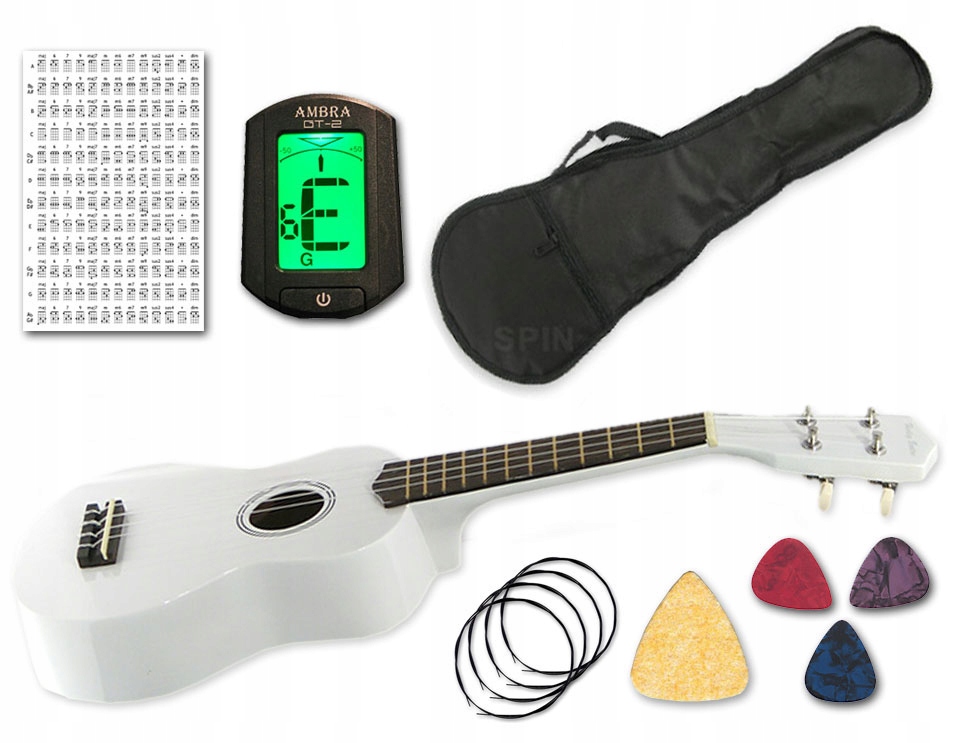 БЕЛАЯ УКУЛЕЛЕ + ТЮНЕР + ЧЕХОЛ + ЗАХВАТЫ + ЛОДЫЖКИ
