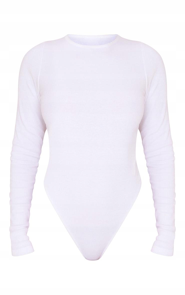 БЕЛОЕ БОДИ В РЕБРУСКУ С ДЛИННЫМИ РУКАВАМИ, ПРИТЯЖЕННЫМИ PRETTYLITTLETHING 40