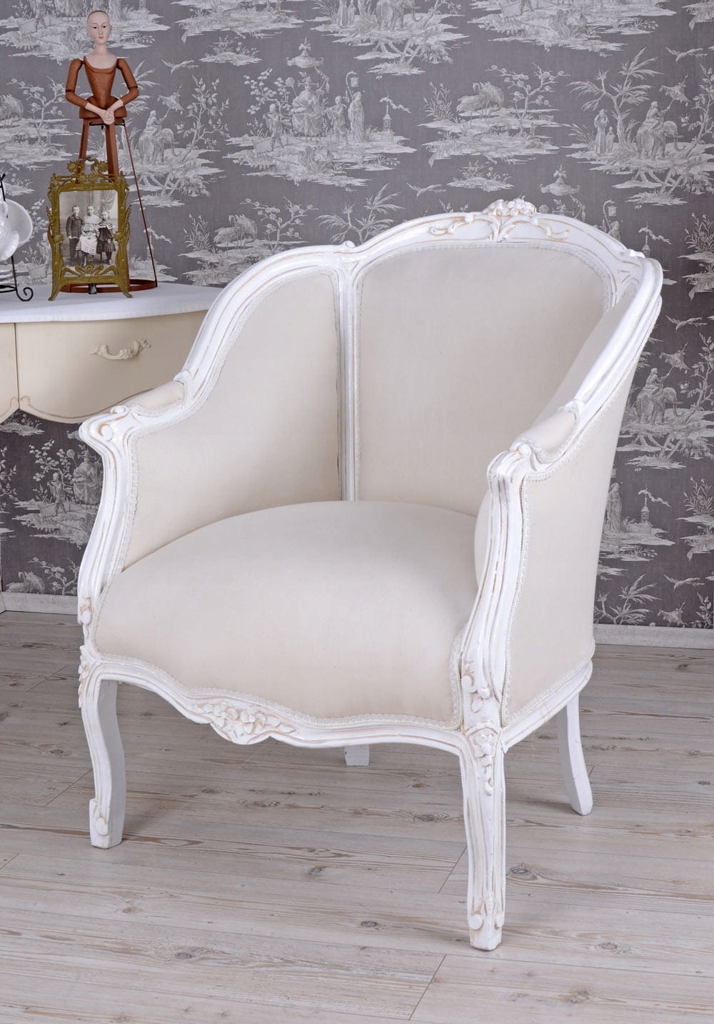 Кресло с резным деревянным каркасом, белое рококо – классическая элегантность