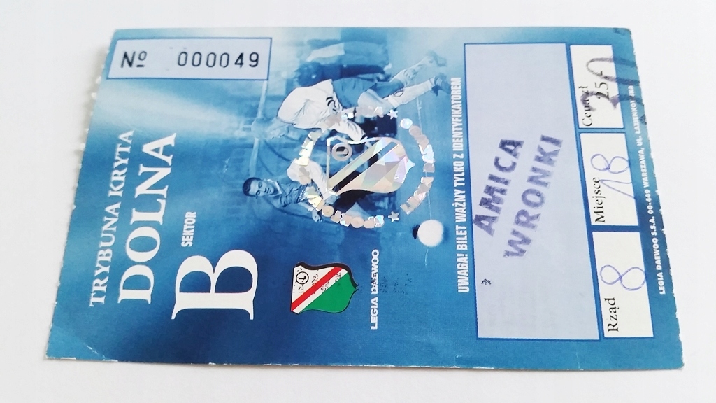bilet LEGIA Warszawa - AMICA Wronki 01.03.2002