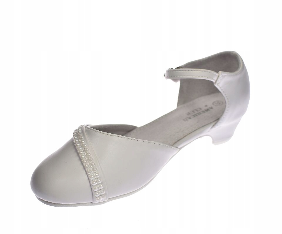 Белые балетки для девочек на высоком каблуке, застегивающиеся на ремень, бренд American Club