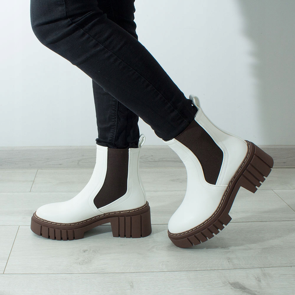 БІЛІ ЖІНОЧІ ЧОБОТИНКИ НА ПЛАТФОРМІ УТЕПЛЕНІ ЧОБОТИНКИ КОРИЧНЕВІ ГУМОВІ 39