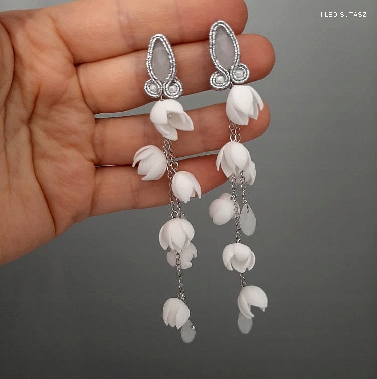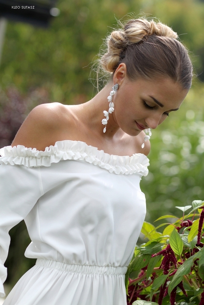 БІЛІ КВІТИ ВЕСІЛЬНІ СЕРЕГКИ КРАСИВИЙ БОХО
