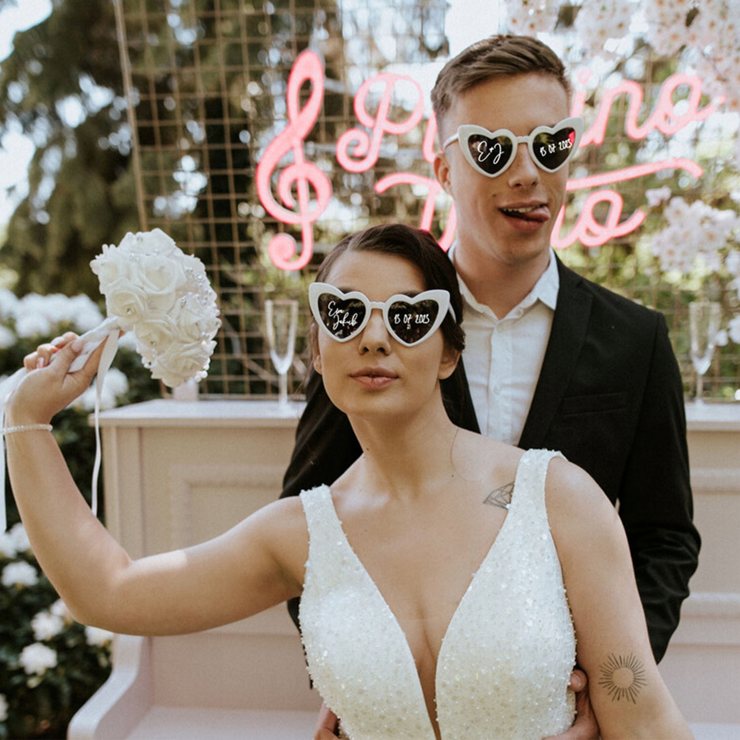 Фотографии всех гостей, сделанные в очках с веселыми надписями, станут оригинальным сувениром и одновременно большим развлечением.