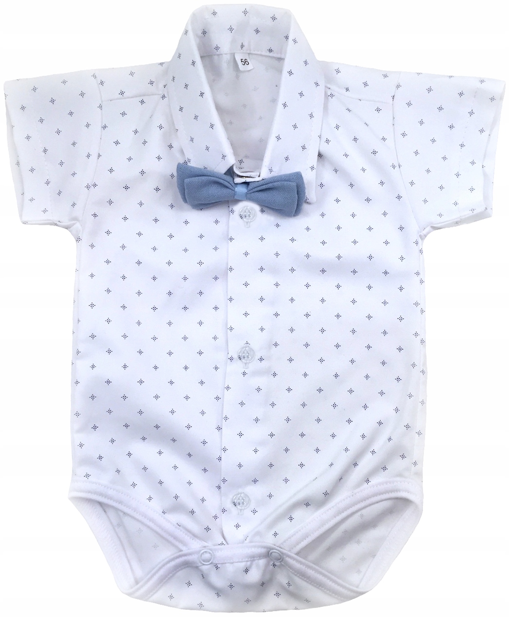 Формальный костюм-рубашка-боди с короткими рукавами для мальчика. В комплект входит галстук-бабочка на ленте - синего цвета в клетку. Возможна замена цвета галстука-бабочки на другой, имеющийся в наличии на аукционе.