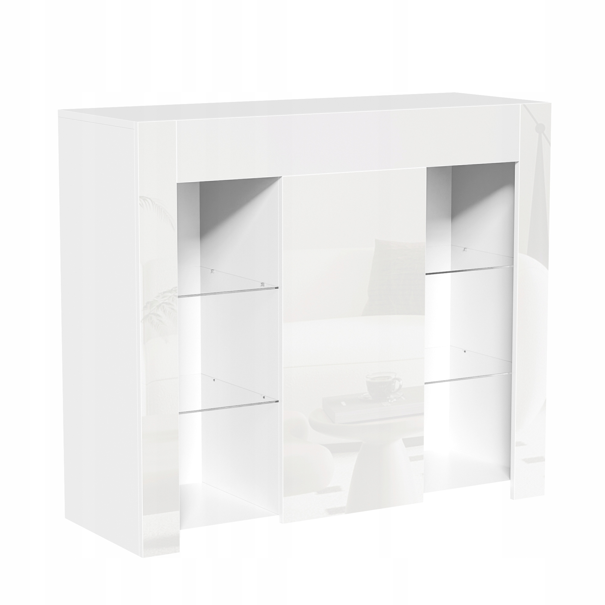 - ЭЛЕГАНТНЫЙ ДИЗАЙН: Современный белый буфет с глянцевой лицевой панелью и матовой поверхностью, обеспечивающий роскошный и гармоничный вид.