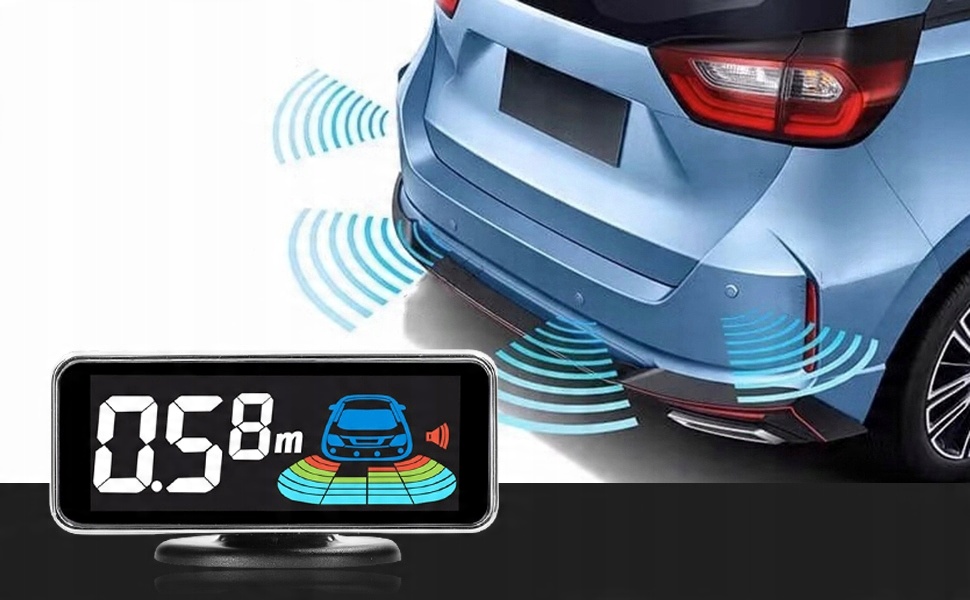 - ✔【Удобная видимость】 Высококачественный цифровой ЖК-дисплей, отображение в реальном времени зеленой, желтой и красной 7-сегментной светодиодной полосы для указания расстояния до препятствия.
