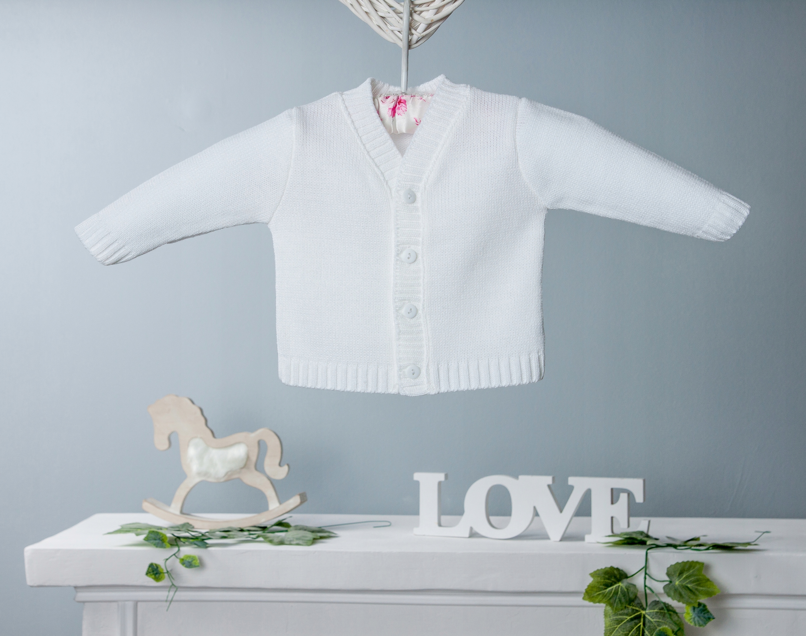 Красивый, гладкий свитер, застегивающийся на пуговицы, из нежного трикотажа, идеален для Крещения и других случаев.