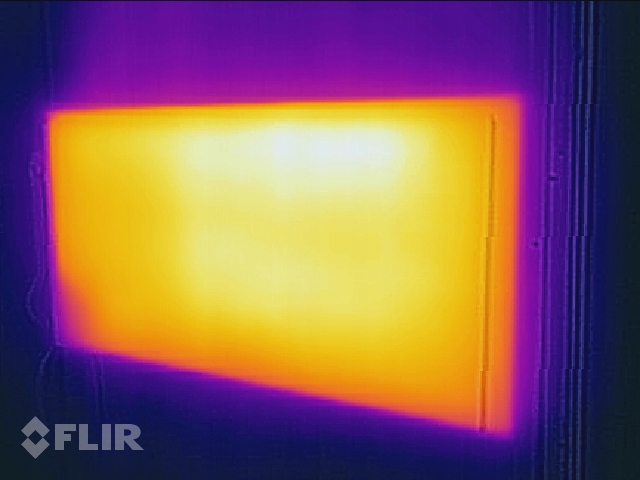 Равномерный нагрев: Отсутствие «горячих точек» и холодных участков на панели означает, что тепло распределяется оптимально, обеспечивая тепловой комфорт по всему помещению без эффекта «перегрева» в одном месте.