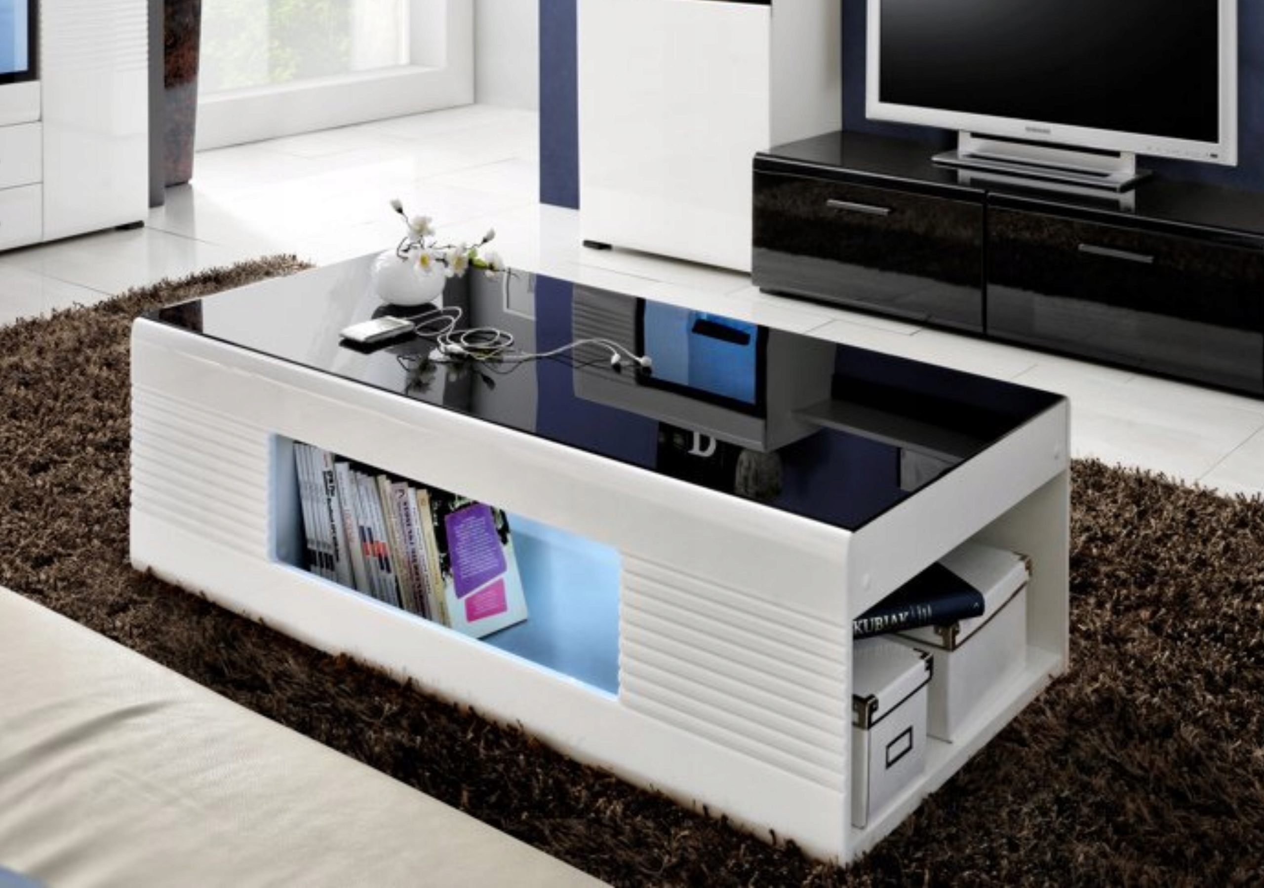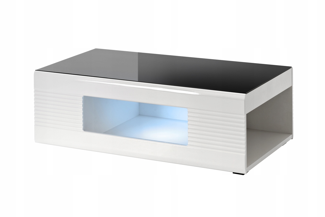 Білий глянцевий журнальний столик Скляна лавка + LED