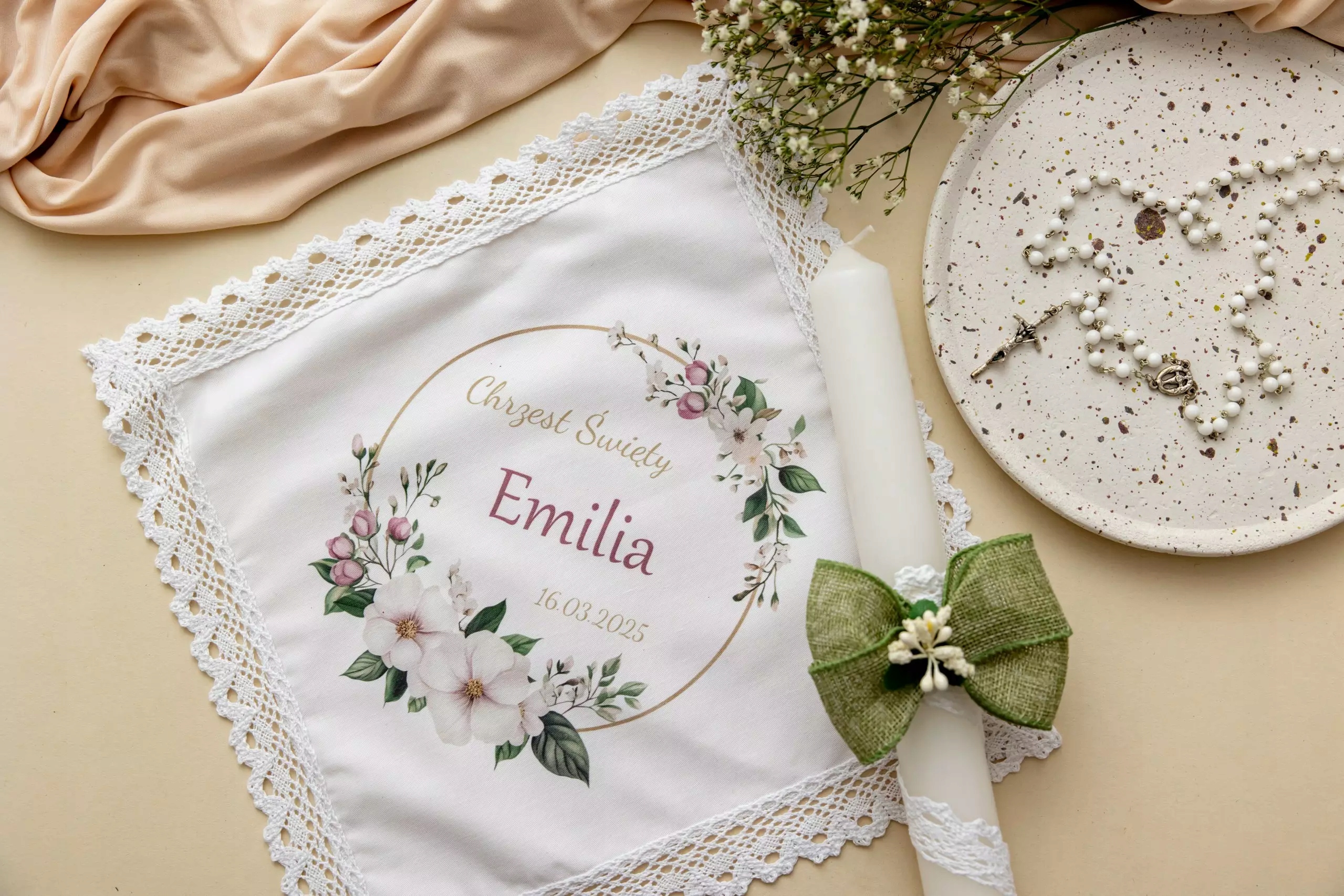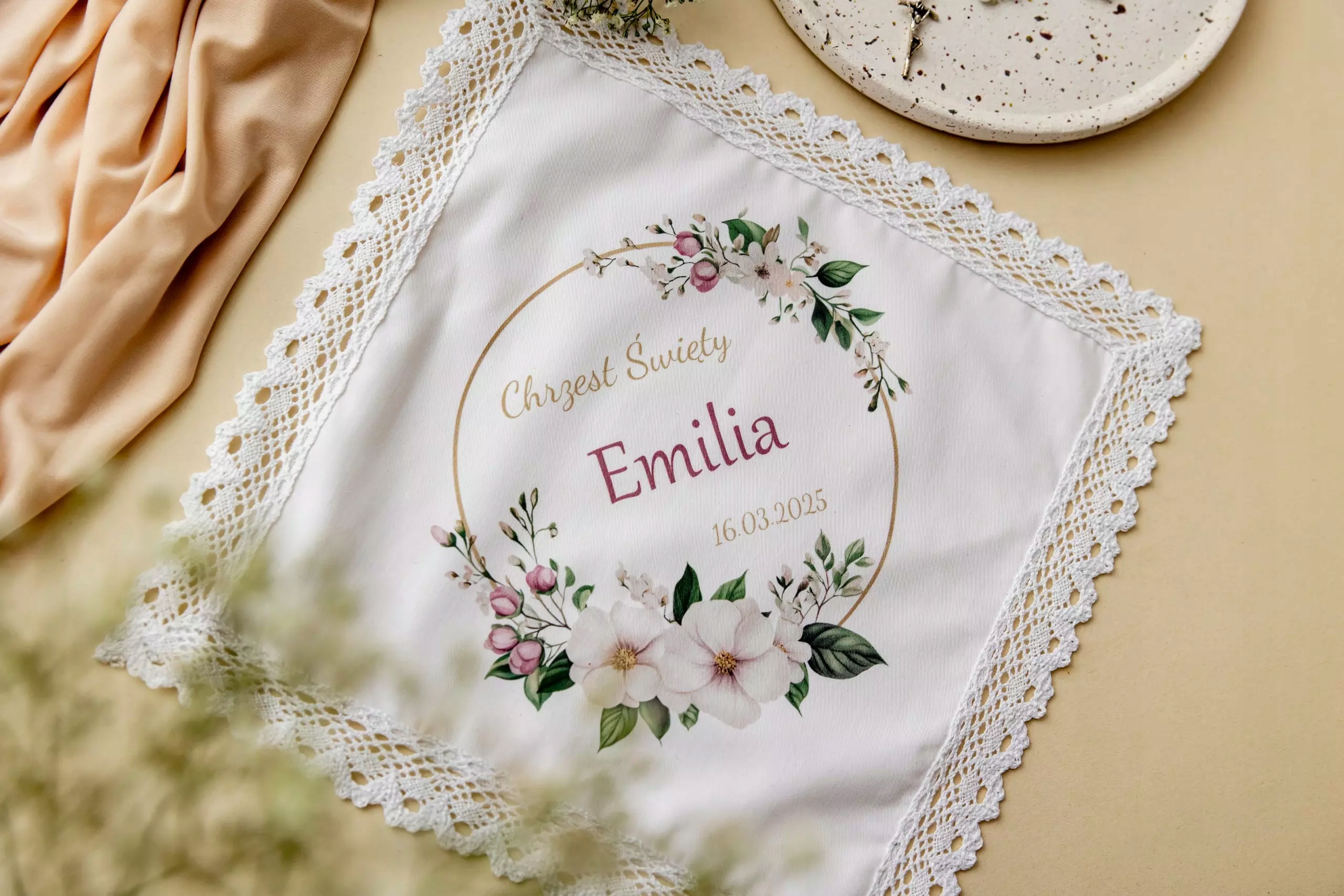 Главная одежда печатается по имени ребенка и дате крещения - благодаря этому это становится уникальным семейным сувениром, который приобретает личное значение и будет прекрасным воспоминанием через годы.
