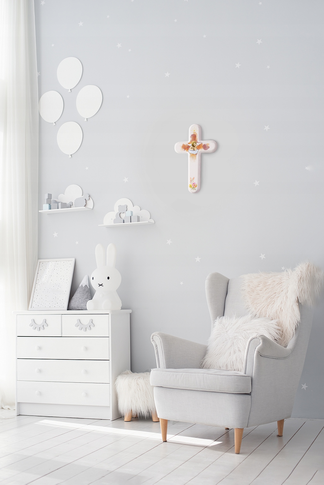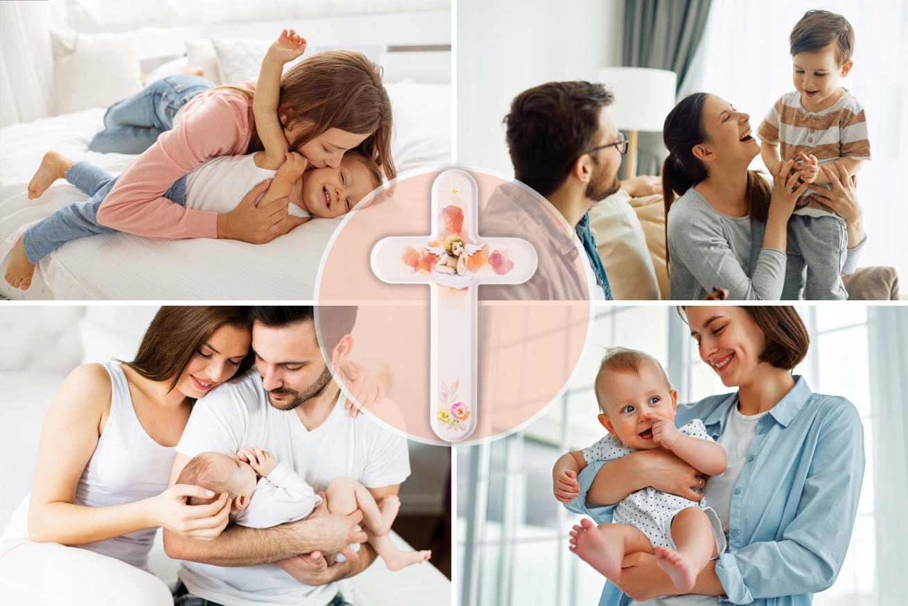 Крест поддерживается в детской конвенции, в идеале подходящей для первого причастия или крещение .