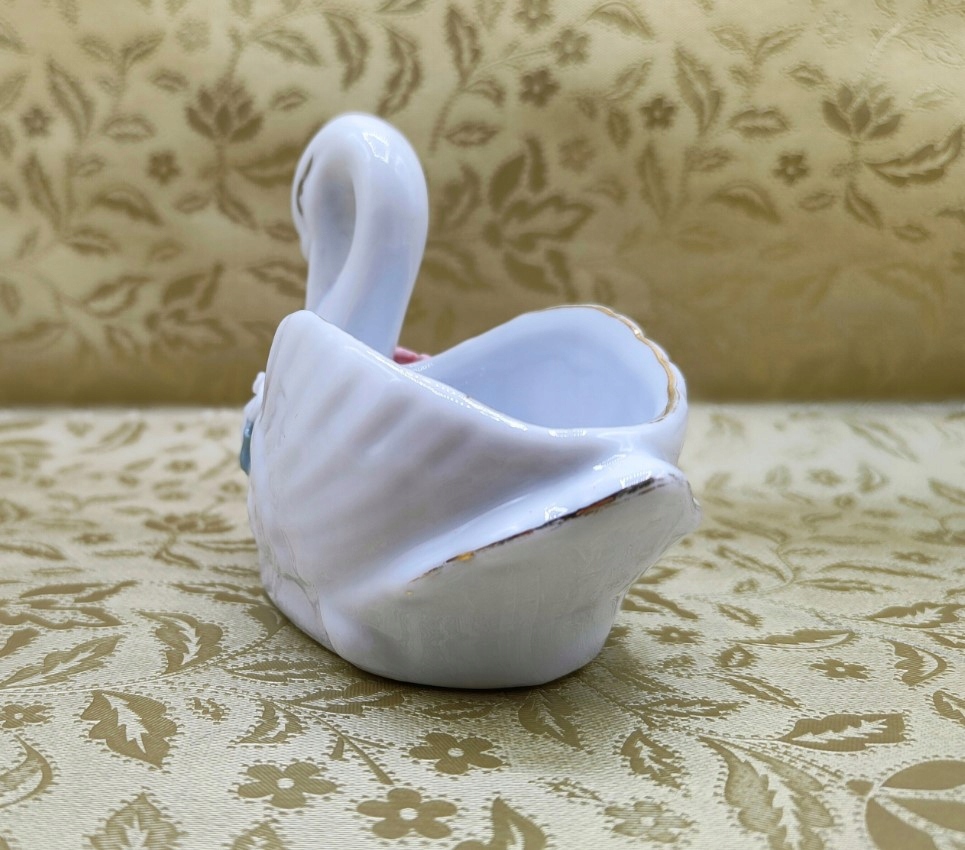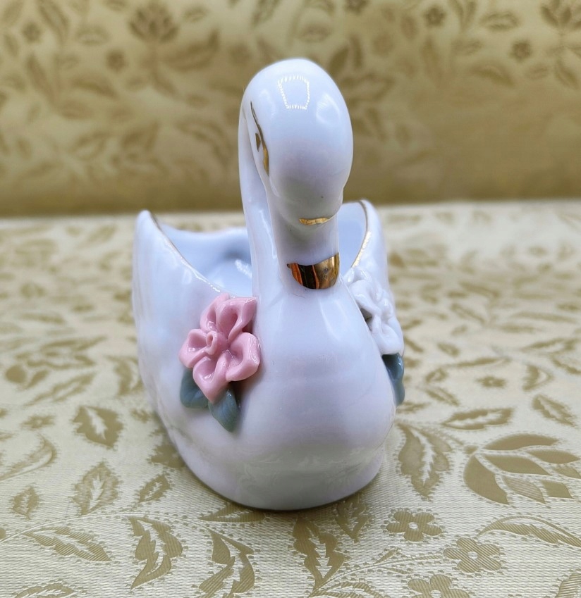 Белый - Золотой лебедь красивый фарфоровый контейнер Квартира с бабушкой и дедушкой была со вкусом и стильно обставлена. Дома были различные коллекции, одно старые, интересные и дорогие вещи, другие немного меньше. Полный различных прохладных предметов антиквариата, антиквариата и безделушек. Эти вещи присоединились к нашей коллекции, но она не подходит для всех нас. Так что «эти сокровища» не застряли навсегда в отсеке для хранения с душевной болью, я поставил их на аукцион.