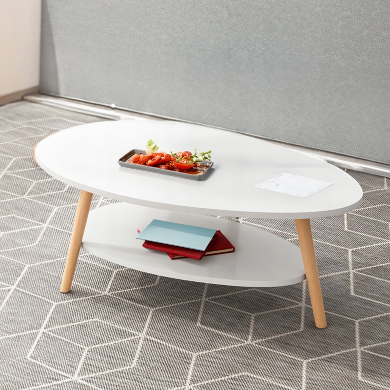 БІЛИЙ КАВОВИЙ СТОЛІК З ПОЛИЧКОЮ В СКАНДИНАВСЬКОМУ СТИЛІ ЛАВА ОВАЛЬНИЙ СТОЛ ДЛЯ ВІТАЛЬНІ