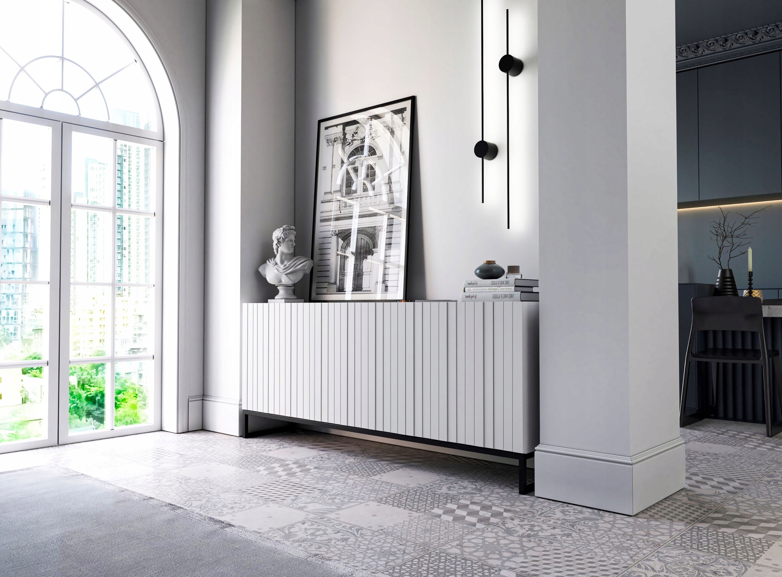Білий комод MAT RTV Тумба під телевізор Loft Ребристі фасади 168 см Modern Matt