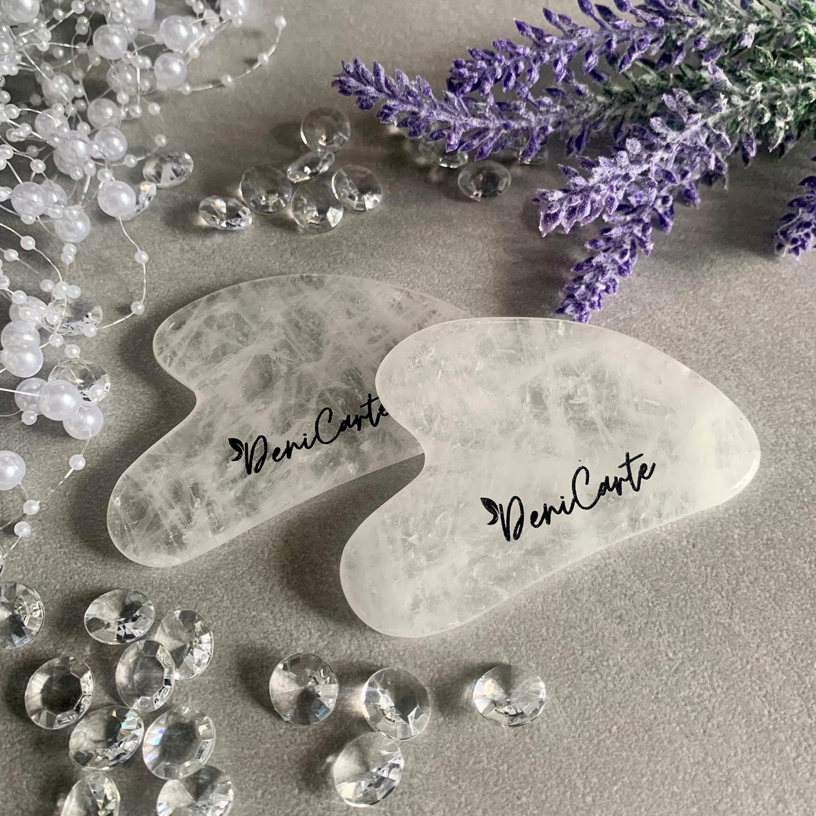 МАССАЖЕР ДЛЯ ЛИЦА БЕЛЫЙ КВАРЦ С ПЛАСТИНАМИ ГУА ША