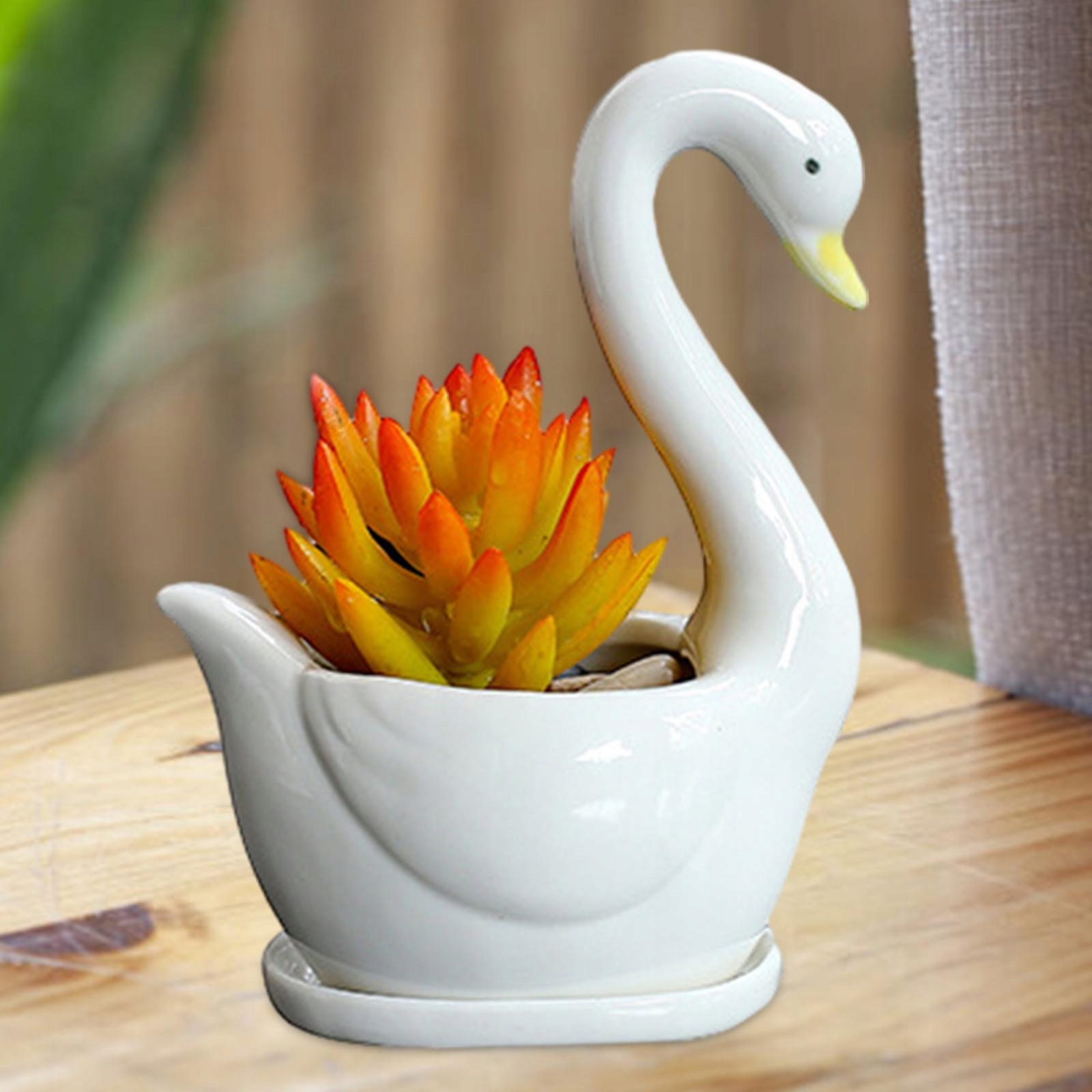 [Материал]: мини-цветочный горшок изготовлен из керамических материалов, милая фигурка лебедя, очаровательная, тонкая работа.
