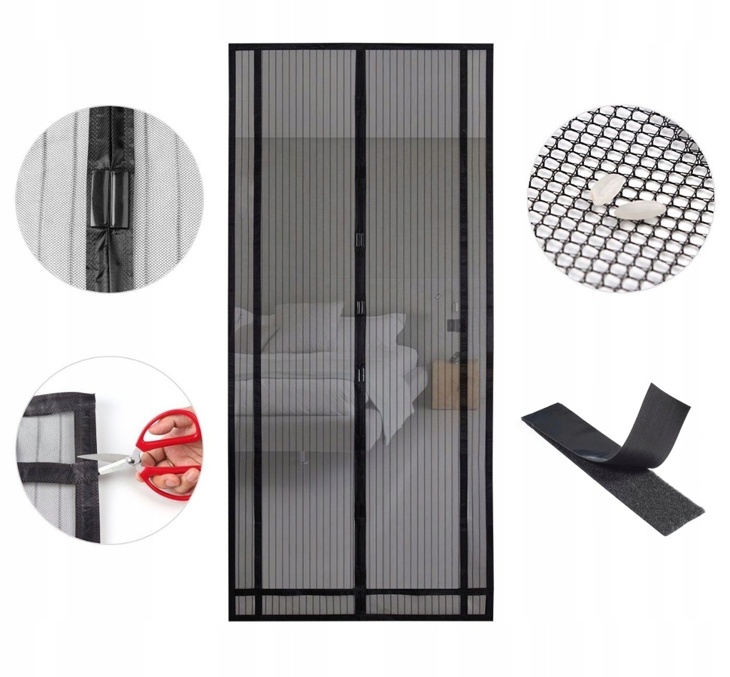 Mosquito Net Magnetic Mosquito Net - два ремня. Занавес состоит из двух белых сетчатых поясов с магнитными поясами, установленными по краям - при выходе из занавеса мы раздвигаем ремни, которые затем после нашего прохода «автоматически» скользят позади нас, защищая комнату. Подходит к двери до максимума 160 см x 240 см