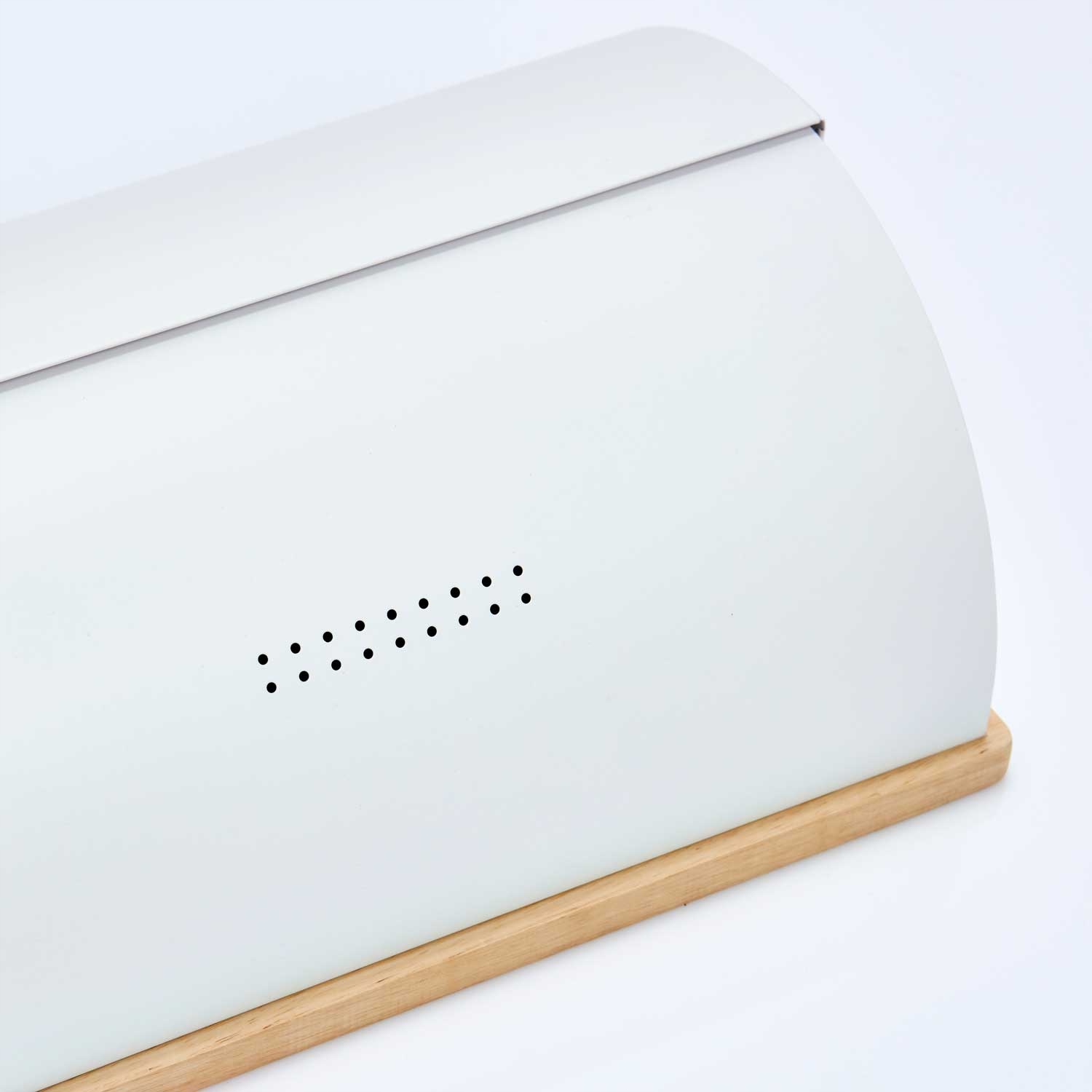 БЕЛАЯ МЕТАЛЛИЧЕСКАЯ ХЛЕБОПЕЧКА НА ДЕРЕВЯННОЙ ОСНОВЕ