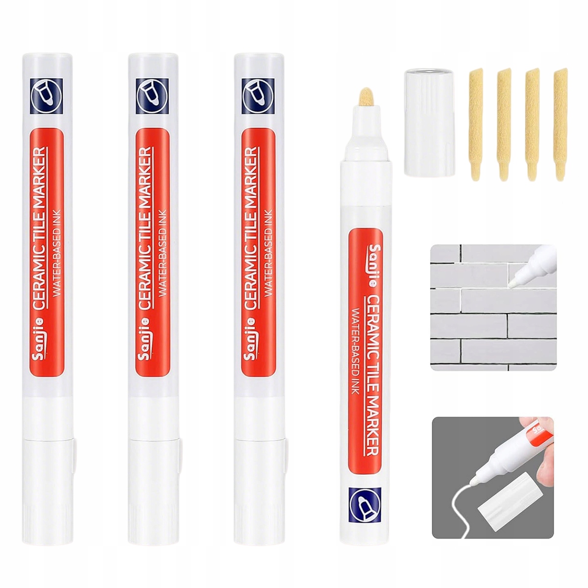 - 4 маркера для затирки керамической плитки (со сменными наконечниками)
