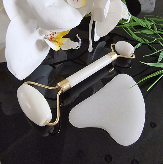 БІЛИЙ РОЛИК-МАСАЖЕР БІЛИЙ + ПЛАСТИНА ГУА ША
