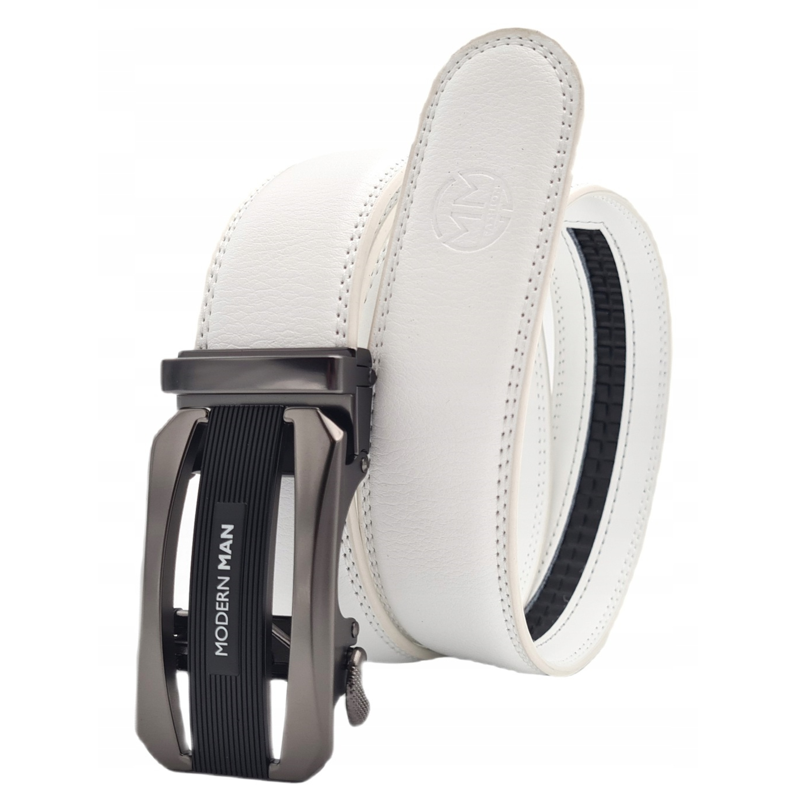 Белый кожаный ремень для брюк Серебряный зажим Элегантный современный подарок h1>