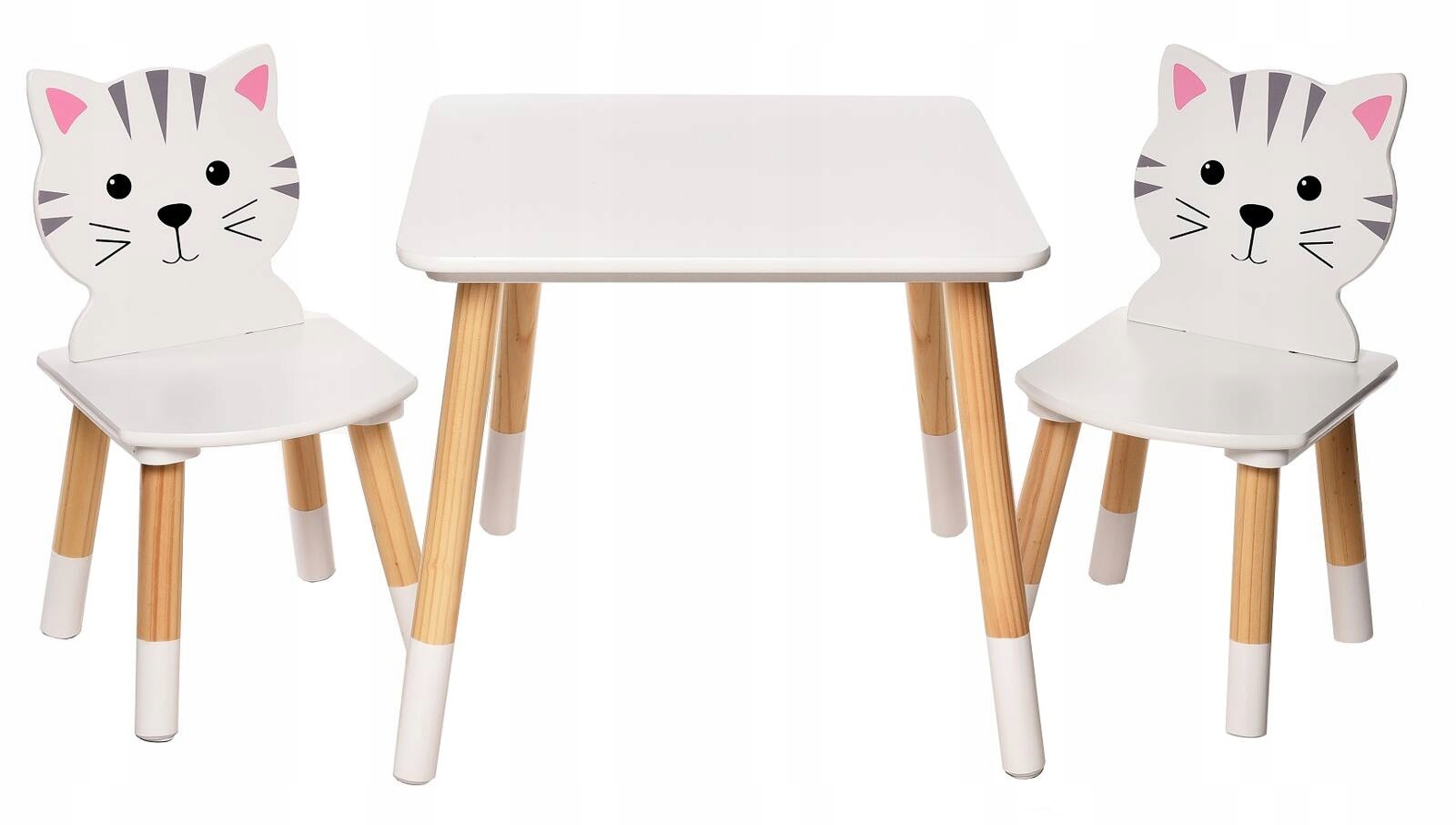 Белый серый стол котт кот 2 стулья для детей деревянная мебель