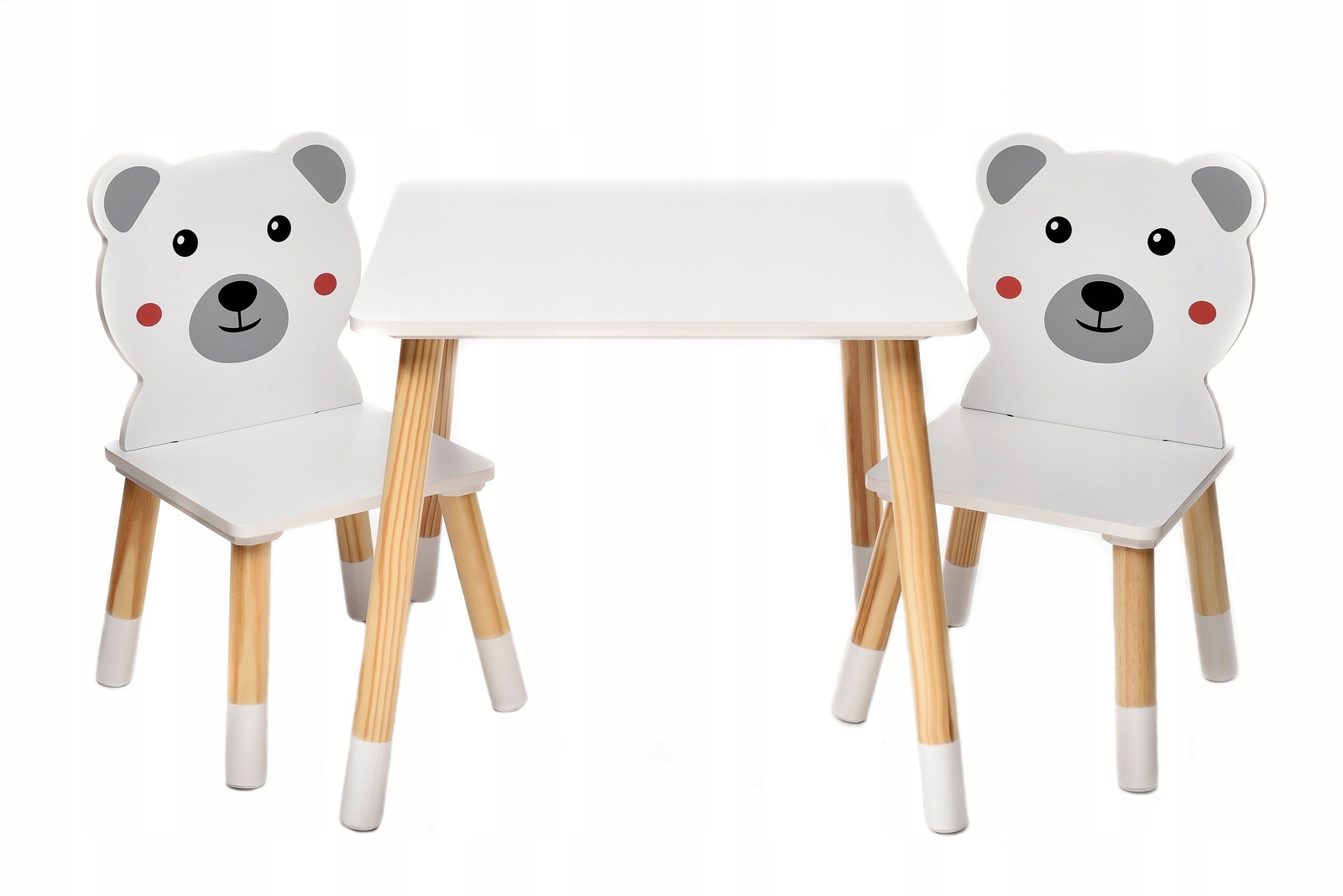 БІЛИЙ СТІЛ ВЕДМЕДИК ВЕДМЕДИКИ ДЛЯ ДІТЕЙ 2 СТІЛЬЦІ ДЕРЕВ'ЯНІ ДИТЯЧІ МЕБЛІ