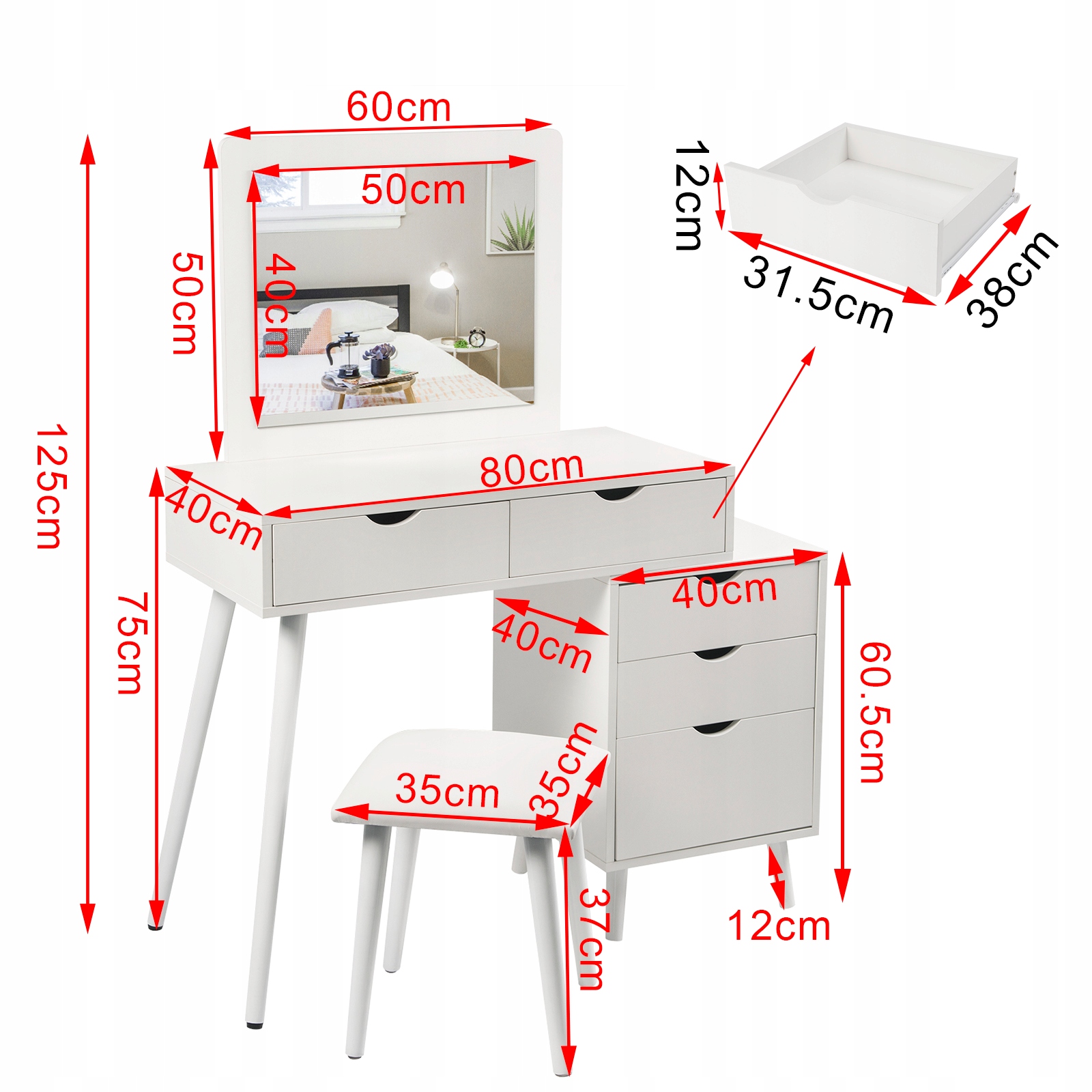 - Просторная рабочая поверхность и 5 ящиков обеспечивают много места для хранения ваших потребностей. Размещенные ящики помогают организовать косметику, украшения и т. Д. Все ящики оснащены гладкими и тихими металлическими гидами.