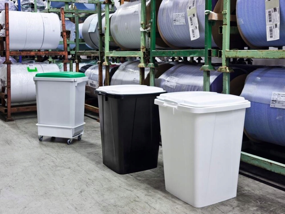 Прямоугольный пластиковый контейнер для мусора или вторсырья.