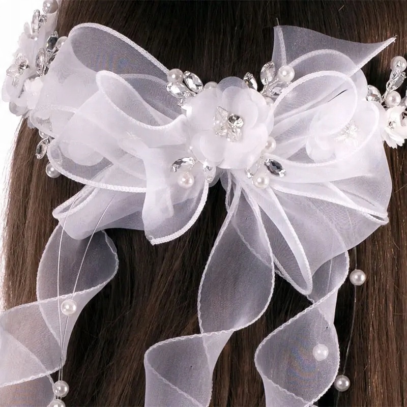 Білий вінок для причастя з кристалами, віночки для причастя WM51-21