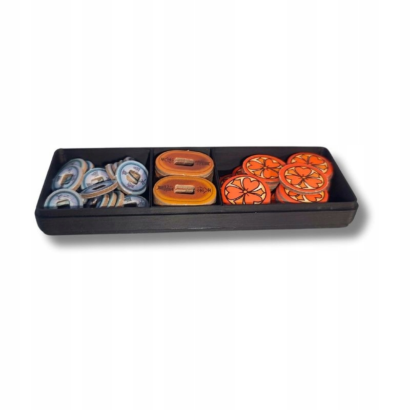 Забудь о беспорядке в коробке! INSERT "Белый замок" был разработан, чтобы все элементы игры упорядоченным образом. Благодаря до 14 специально разработанных контейнеров , каждый компонент найдет свое место, что значительно ускоряет подготовку к игре. Кроме того, INSERT имеет закрытые контейнеры на мостах и монетах, которые не только защищают элементы, но и предотвращают их перемещение во время транспорта