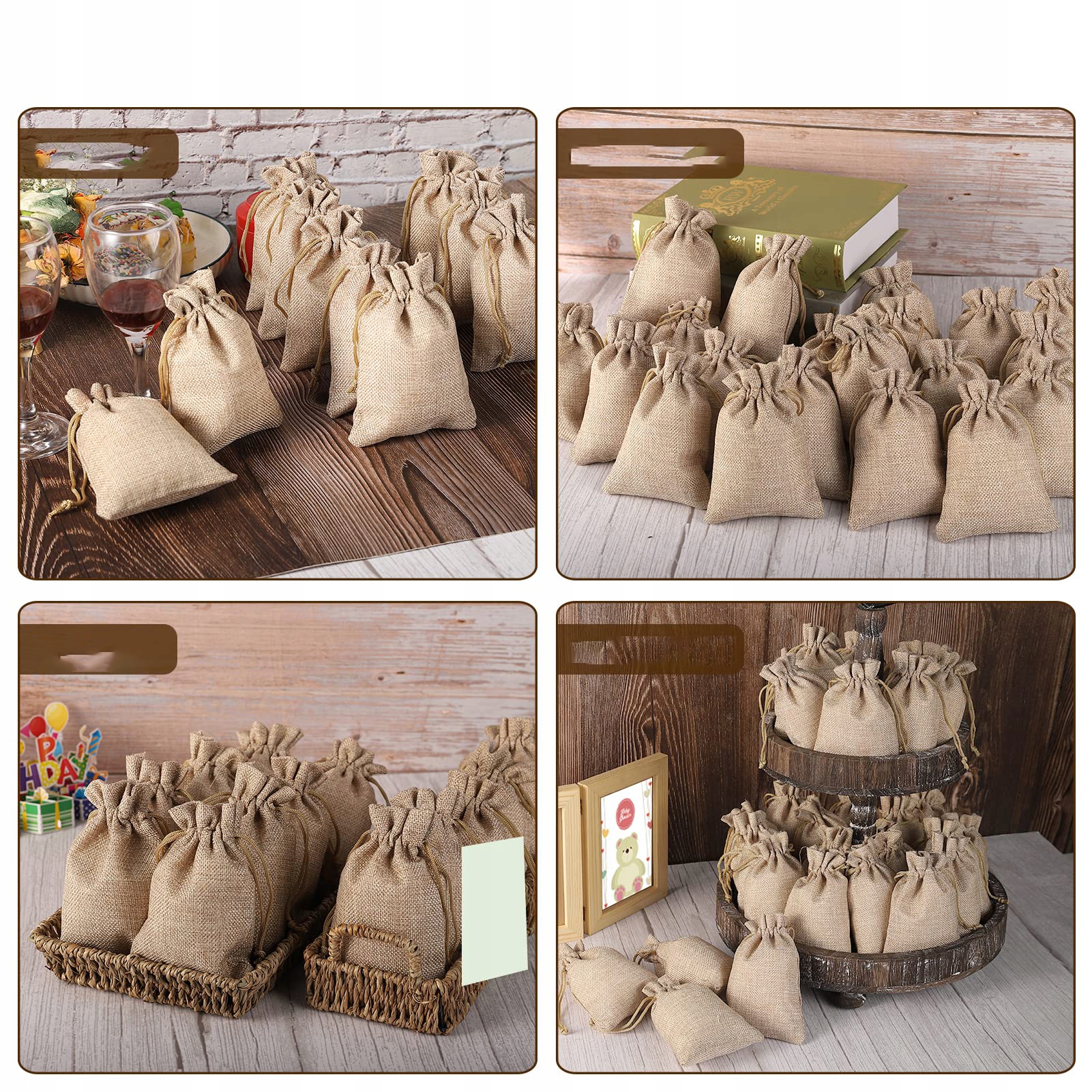 Мягкий интерьер: Внутренний материал подарочных пакетов с оттенком мягкий, что предотвращает царапины и поддерживает чистые объекты во время хранения. Высококачественные джутовые сумки -это хорошо сделанные и изысканные подарки.