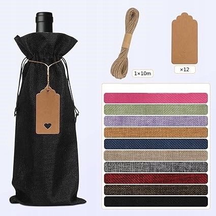 - винные мешки изготовлены из хлопка и льняной ткани, долговечны и многоразовые, можно много раз использовать для хранения вина и защиты бутылок из пыли с помощью струны; Подарки для подарков - это подвески для ремесленных бумаг, элегантные для приветствий. Их можно повесить на сумочки с джутовой струной.
